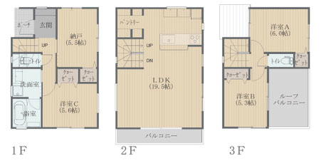 (1F35.60㎡/2F38.09㎡/3F26.08㎡)
